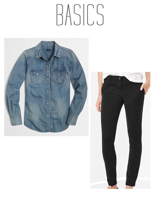 If you start with good blank canvas basics–like say– a denim shirt and a great pair of cropped black pants,  it is beyond easy to take an outfit from day to night while still looking polished and stylishly intentional.  The secret’s in the sauce, as they say.  And by sauce, I mean, accessories.