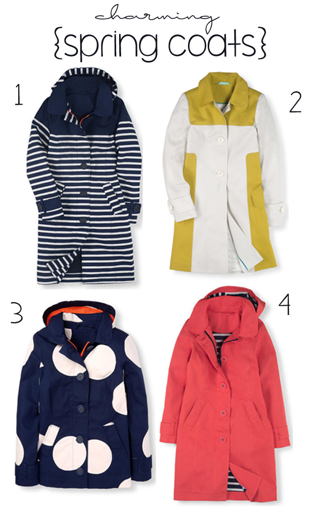 One of the tricks I use to combat the winter blues and grays is to add a charming spring coat in bright colors and cheerful patterns into my daily rotation. A bright and cheerful coat can do wonders for your mood, it always makes me feel charming, and it’s basically an outfit all on it’s own. I just added this fun ASOS beauty to my closet (I love coats that look like something Audrey would wear- and this one just sings Miss Hepburn), last seen here and here, and Boden is always a go-to for me. They’ve just nailed the spring coat.